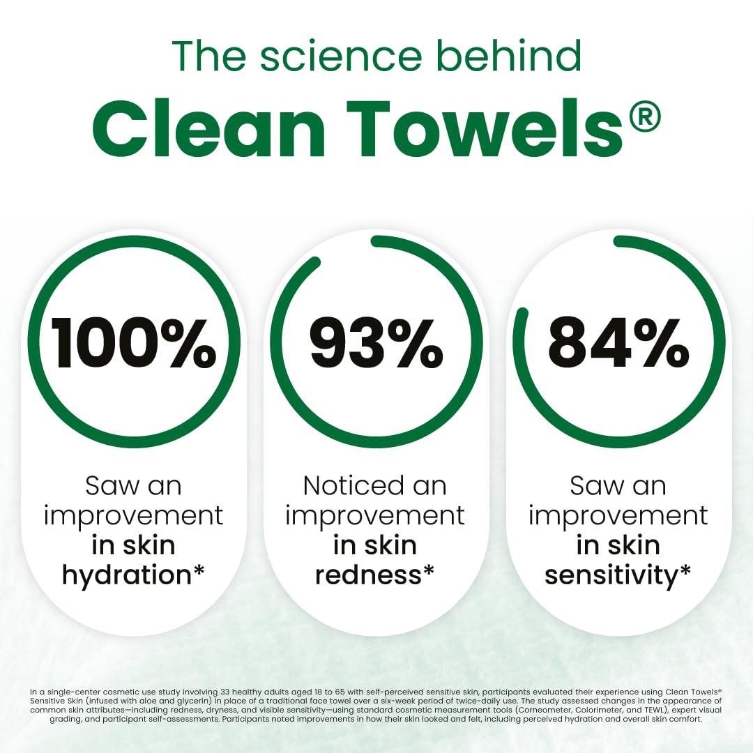 Clean Skin Club Clean Towels® XL Sensitive Skin | Ultra-Soft Disposable Face Towel Infused with Aloe & Glycerin | Dermatologist-Approved, Single-Use Towelette for Sensitive & Reactive Skin, 50 count