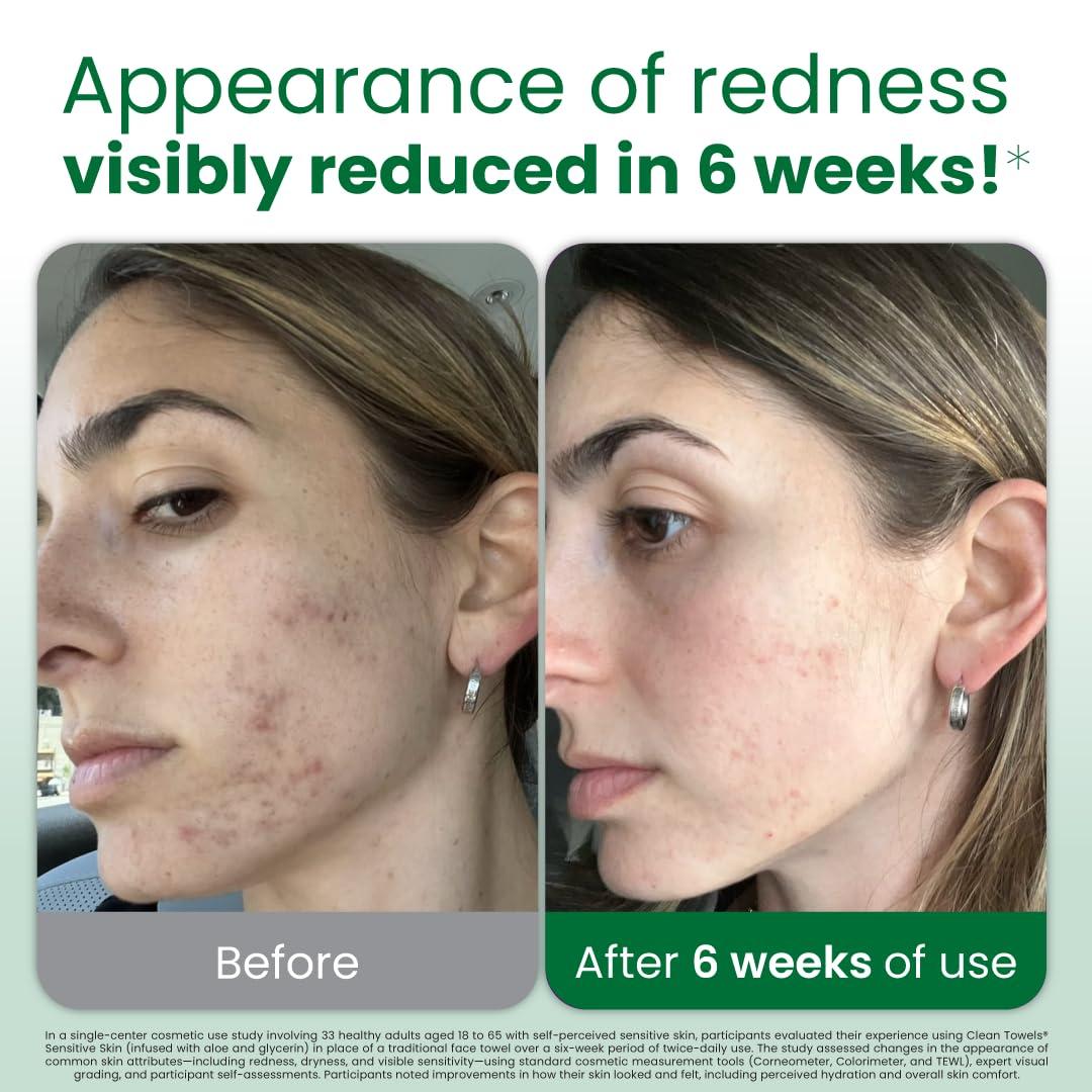 10 single-use, ultra-soft facial towels infused with aloe and glycerin to help soothe, hydrate, and protect sensitive skin. Clinically tested and dermatologist-approved to improve hydration, comfort, and visible redness — even during travel.