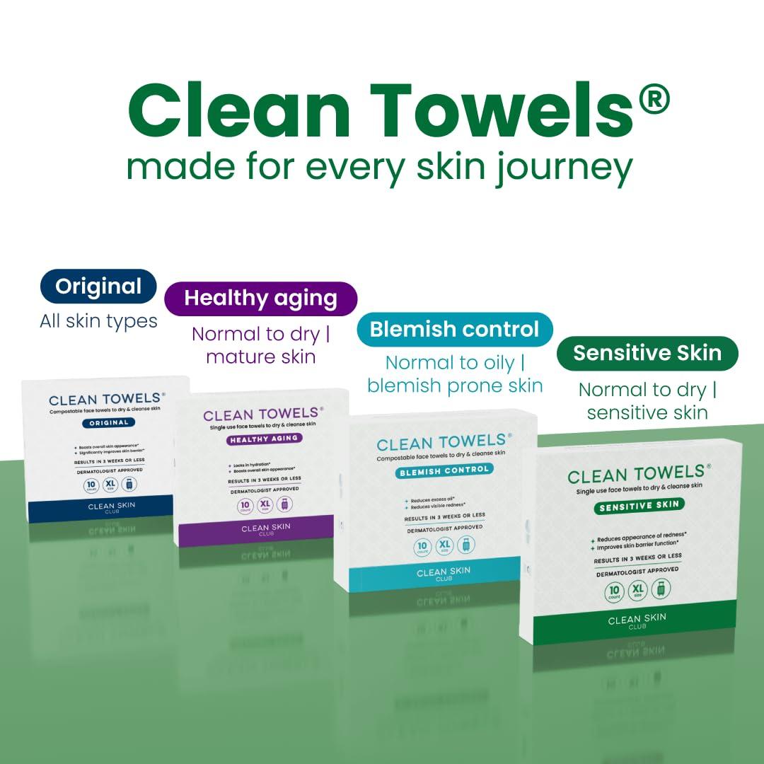 1 travel pack of Clean Skin Club Sensitive Skin Clean Towels XL for a total of 10 face towels. Compact and TSA-approved, perfect for on-the-go skincare, travel bags, camping or carry-on toiletry kits. Designed for delicate, reactive, or redness-prone skin that needs extra care while traveling.